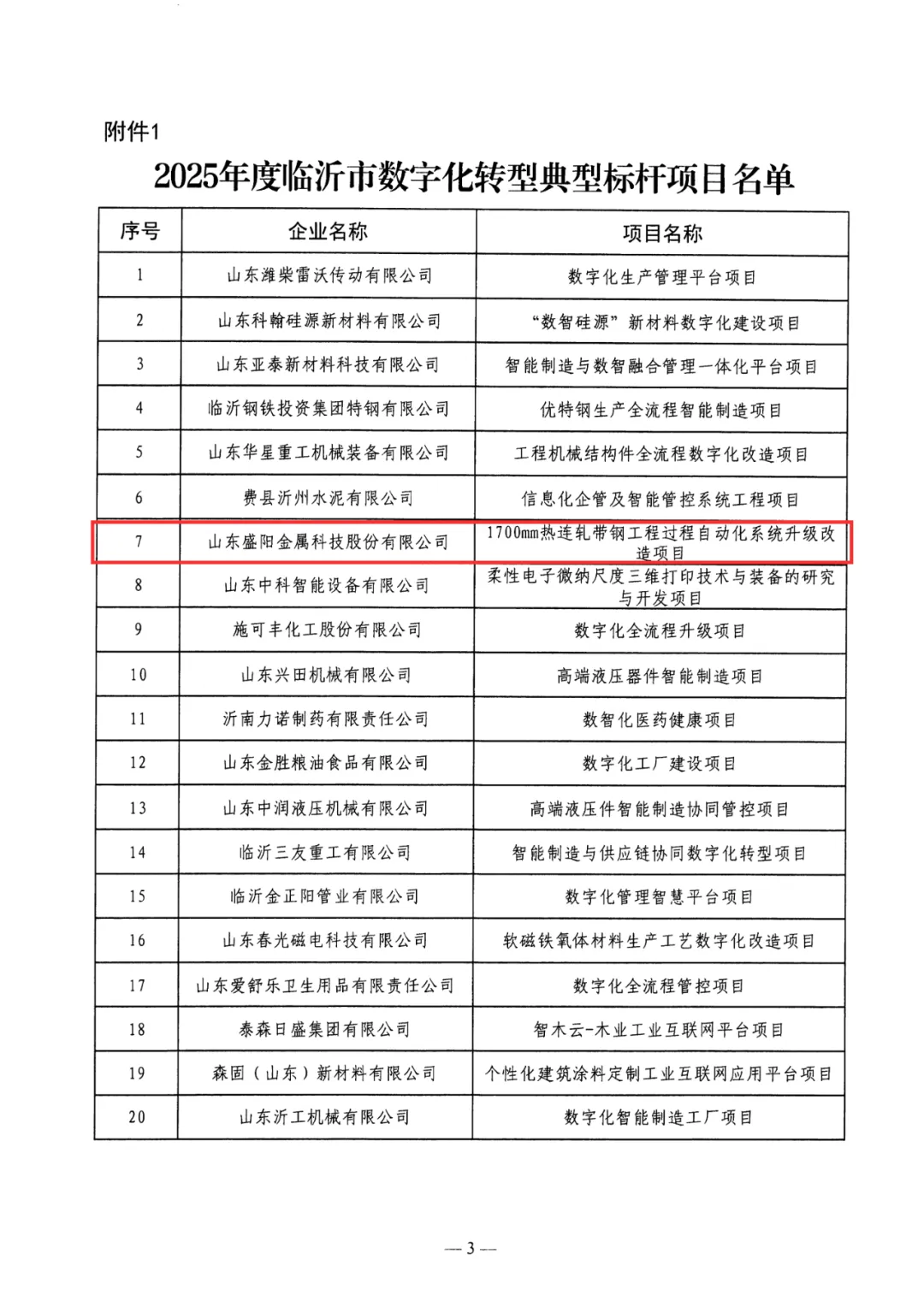 近日,臨沂市工業和信息化局公布2025年度臨沂市數字化轉型典型標桿項目和優秀服務商名單,山東盛陽金屬科技股份有限公司申報的“1700mm熱連軋帶鋼工程過程自動化系統升級改造項目”成功入選。